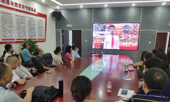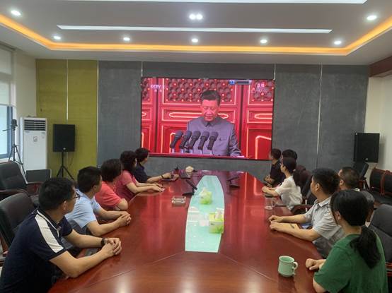 蘑菇视频 党委高度重视、精心组织党内外师生共计400余人,分致用楼117、335、349、547会议室四个会场收听收看庆祝中国共产党成立100周年大会。