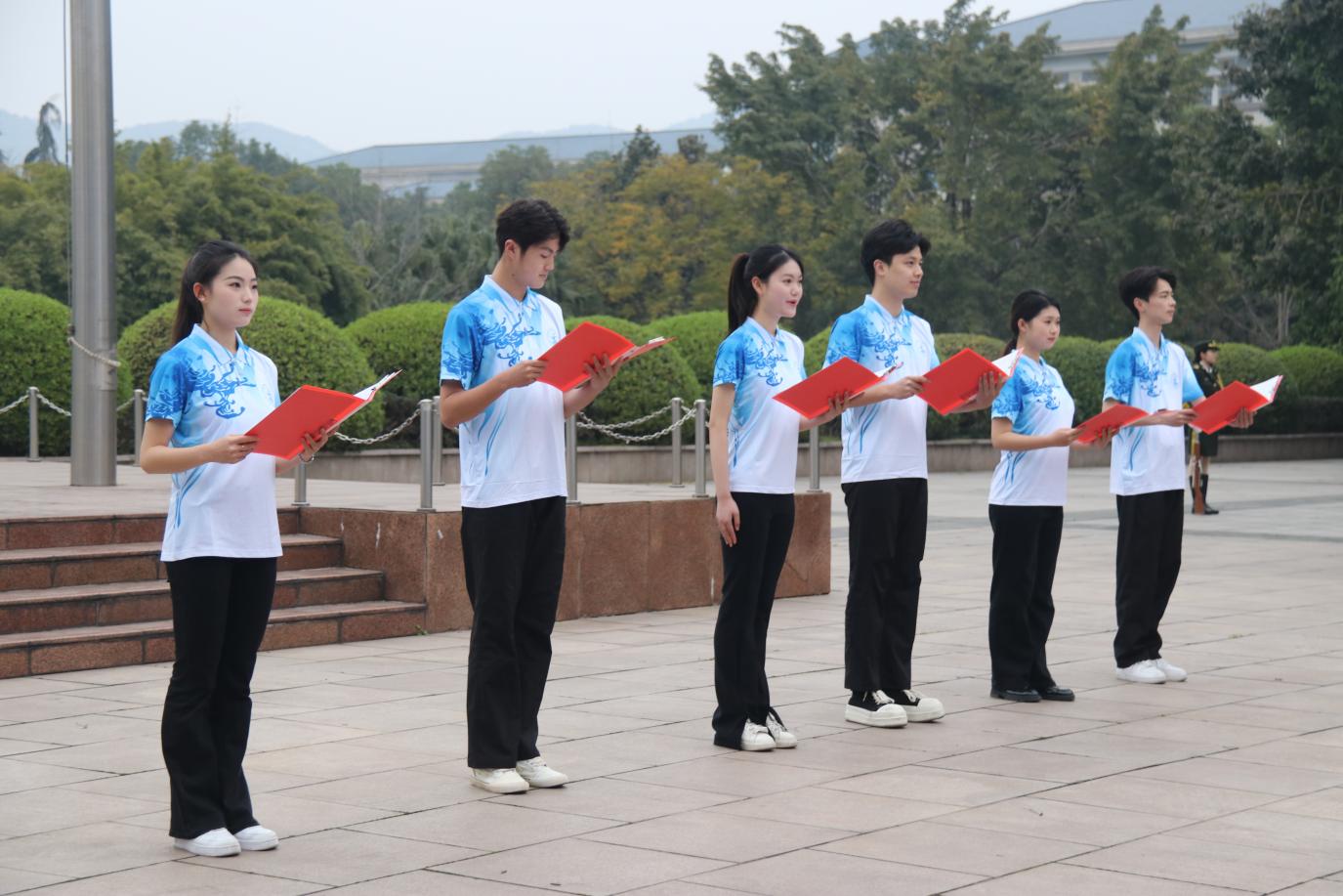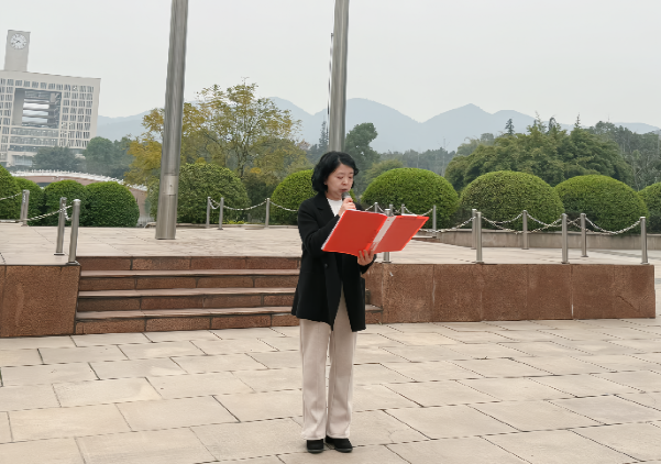 学院党委书记胡芳发表了以“努力用青春书写新时代荣光”为主题的国旗下讲话。针对实现自我价值和为祖国、母校的教育事业添砖加瓦,胡书记对同学们提出三点期望:一是要坚守信仰志向,成为胸怀天下的爱国志士;二是要脚踏实地奋进,成为教育强国的有志之才;三是要勇于挺身而出,成为改革创新的有为之士。希望地旅学子以切实的行动向祖国表达最诚挚的献礼,用汗水和智慧为国旗增添无尽的光辉与荣耀。