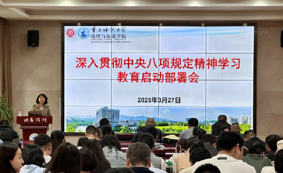 委员会《关于在全校开展深入贯彻中央八项规定精神学习教育的实施方案》的通知(重师委发〔2025〕13号)要求,3月27日,学院召开了深入贯彻中央八项规定精神学习教育启动部署会),党委书记胡芳主持会议,学院全体党员和教职员工参加会议,启动部署深入贯彻中央八项规定精神学习教育工作。