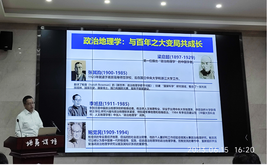 刘云刚教授以地理学的政治与政治地理学的研究背景为始,从地理学视角思考人类,提出了生存空间论涵盖的四点要求,以“与百年之大变局共成长”为核心,阐述了国内外学界对政治地理学与百年之大变局共成长的发展历程,以及西方新政治地理学的发展、西方批判地缘政治学的发展、中国政治地理学的发展与国家建设,以及实用主义的政策研究,提出了中国政治地理学的建设路径,指明了中国政治地理学未来的发展方向。