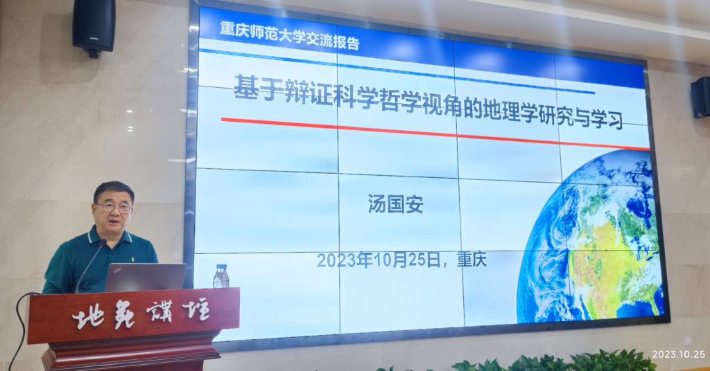 高端学术论坛“地苑讲坛”邀请了江苏省地理信息科学重点实验室主任、国务院学科评议组成员、教育部地理科学类教学指导委员会副主任、江苏地理学学科联盟理事长、南京师范大学地理科学学院汤国安教授作题为《基于辩证科学报告哲学视角的地理学研究与学习》的学术报告。报告在致用楼117会议室举行,校内师生120余人聆听,报告由蘑菇视频