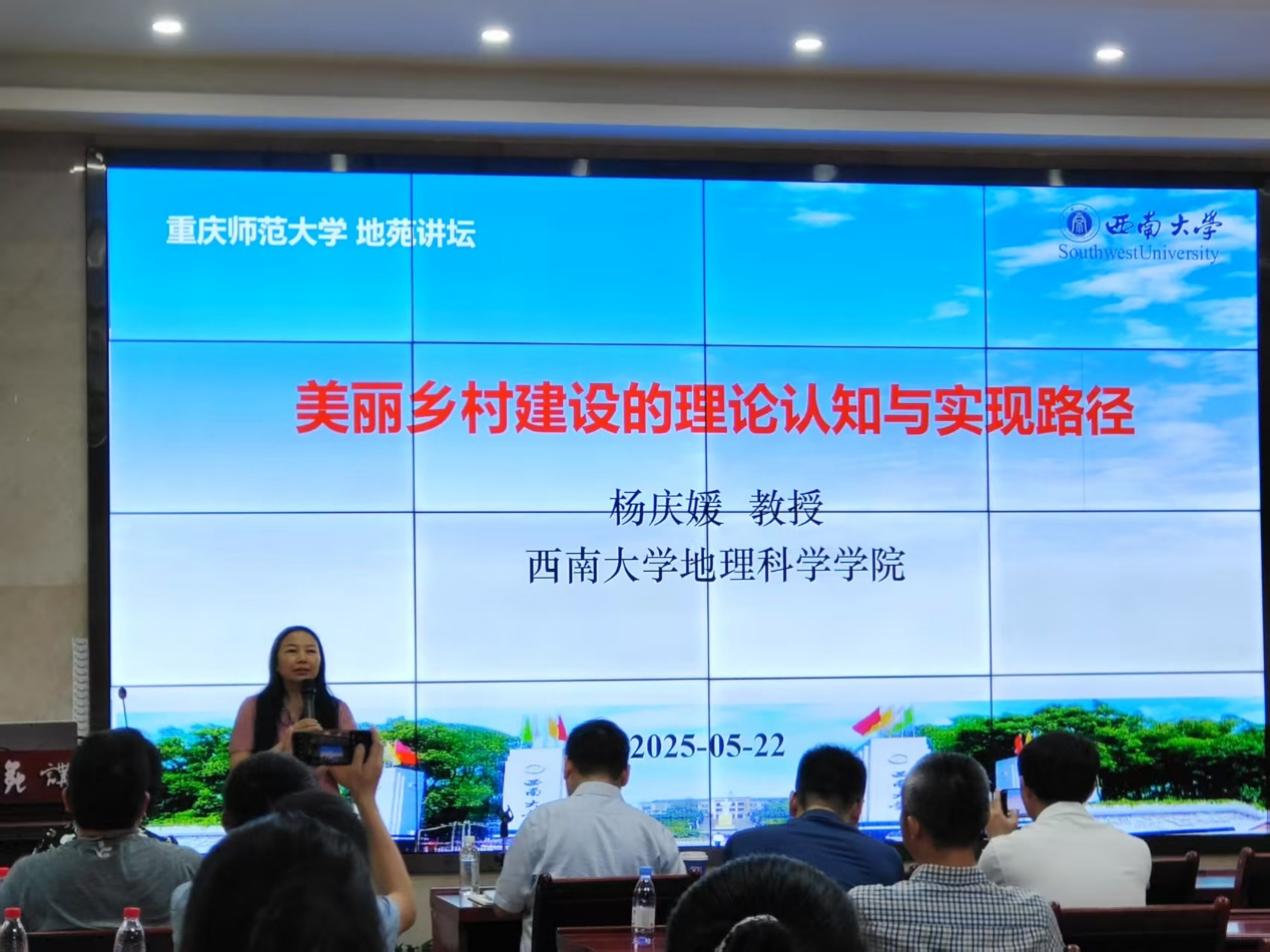 高端学术论坛“地苑讲坛”邀请了西南大学杨庆媛教授,作题为“美丽乡村建设的理论认知与实践路径”的专题报告。报告在致用楼117会议室举行,学院教职工、重庆市骨干教师培训学员(高中地理)、研究生等150余人参加了会议。会议由韦杰院长主持。