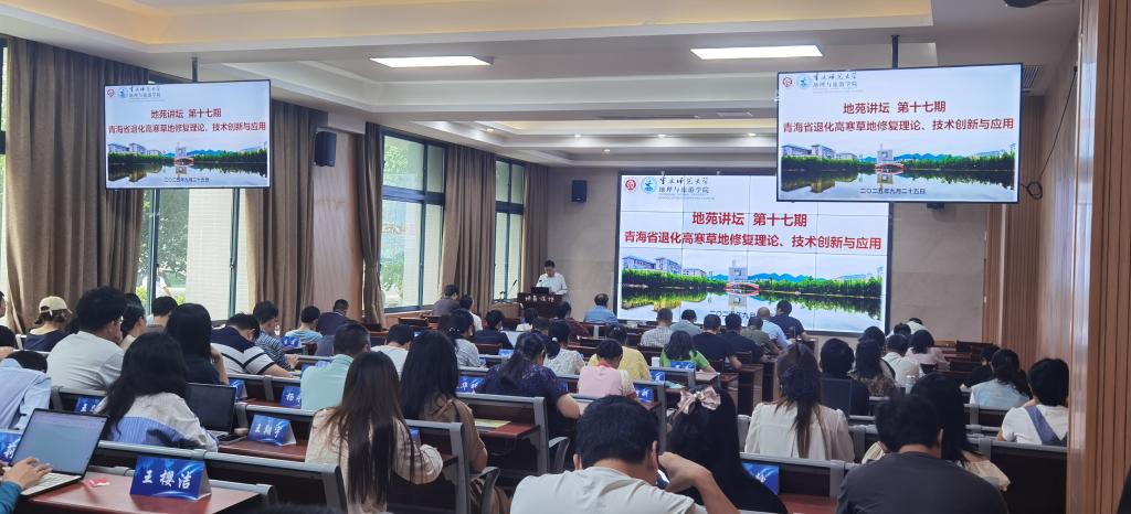 2025年9月25日,蘑菇视频 高端学术论坛“地苑讲坛”邀请了中国科学院西北高原生物研究所周华坤研究员,作题为“青海省退化高寒草地修复理论、技术创新与应用”的专题报告。报告在致用楼117会议室举行,学院教职工、研究生等150余人参加了会议。报告由韦杰院长主持。