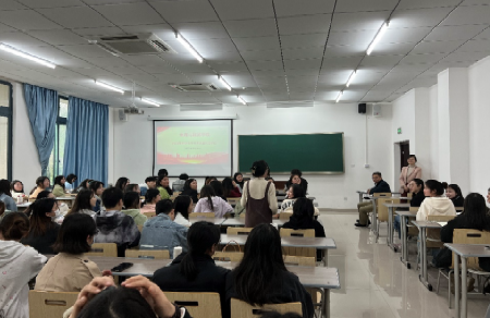 随后,航空服务与艺术管理系主任谢媛媛老师针对考研复试面试中的礼仪,先系统的讲述了面试礼仪对于面试的重要性,再以实践操作的方式细致的讲解了身体姿态、面部表情以及着装等注意事项。谢老师生动形象的讲解使同学们受益匪浅。