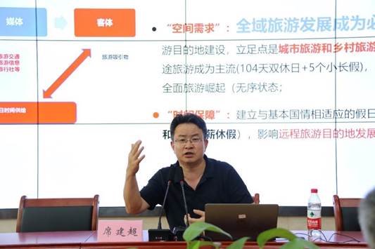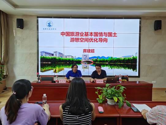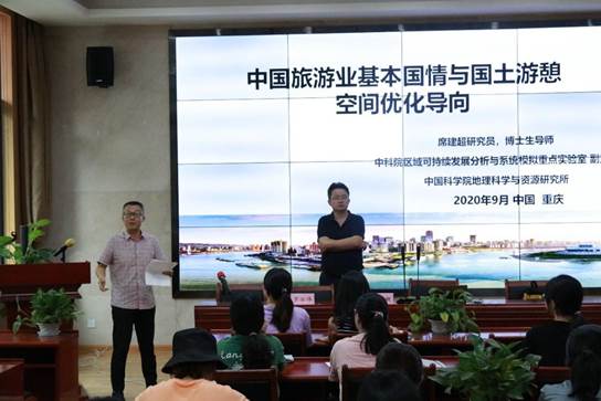 2020年,突如其来的疫情给我国旅游业造成了前所未有的冲击, 如今随着疫情的好转,旅游业的发展该何去何从,这是旅游学界正在积极思考的问题。为进一步熟悉我国旅游业的基本国情,了解其发展 动向,2020年9月8日下午3点,地理与旅游学院兼职硕士生导师、中科院研究员席建超老师在综合实验楼2号楼117会议室,以“中国旅游业基本国情与国土游憩空间优化导向”为主题,与我院120余名研究生、本科生进行了专题交流。交流会前,学院院长罗仕伟教授从学 习经历、学术造诣、项目基金三方面介绍席建超研究员。