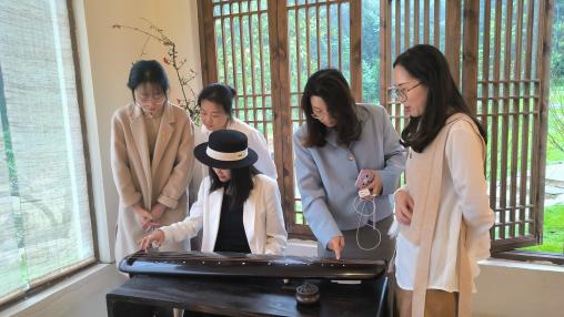 航空服务系校企联合教研室于2023年10月12日下午,在非物质文化遗产泛川派古琴传承基地——沙坪坝文化馆古琴特色分馆举行了“第二个结合”主题教育暨专业建设工作研讨会,会议由系主任谢媛媛主持。