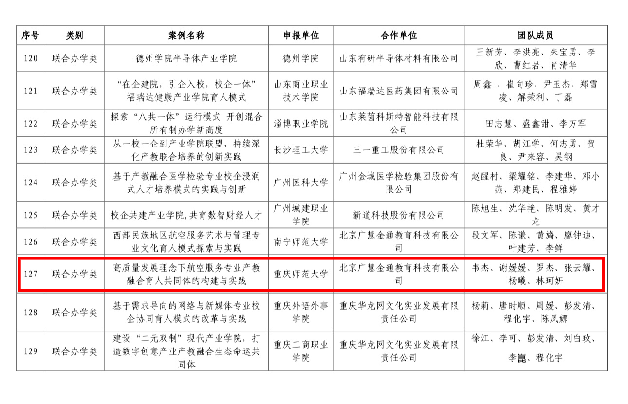 申报的联合办学类案例《高质量发展理念下航空服务专业产教融合育人共同体的构建与实践》被成功认定为典型案例。