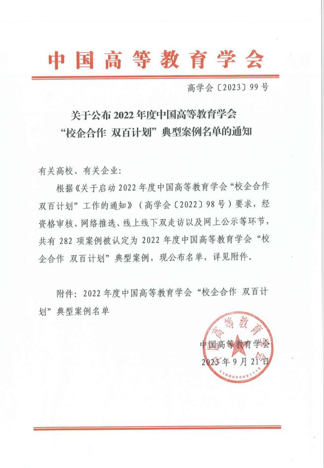本次研讨会构建了高校和企业的对话交流平台,推进高校和企业互动,研讨会上颁发了2022 年度《双百计划”典型案例证书》并进行了2022年度“双百计划”典型案例分享汇报。