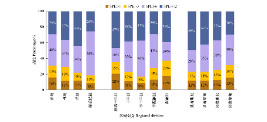 图3 累计影响植被最大的SPEI时间尺度在不同区域的占比