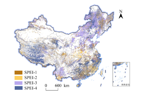 过去半个世纪,我国半干旱和半湿润地区的分界线总体南移,干旱面积呈增加趋势。论文基于长时间序列气候数据建立中国多尺度SPEI指数数据集,结合游程理论方法开展大区域多尺度中国干旱事件研究。研究结果表明,新疆、青藏高原以及东南地区干旱较为严峻,而华中、华东大部分区域处于轻旱或无旱状态;中国植被生产力整体呈改善态势,显著改善区集中在中国中部,而退化区集中在东南部、内蒙古和西藏南部;我国大部分区域干旱与植被呈正相关,且干旱对植被多为累积影响,在干旱区和半干旱区尤为明显;随着植被覆盖度的增加,植被与近短期尺度干旱的相关性也逐渐增加,由干旱区到湿润区,近短尺度干旱对植被变化的影响逐步增大。其中,SPEI-6(标准化降水蒸散发指数—中期尺度)对植被轻微变化累积影响最显著,而SPEI-12(标准化降水蒸散发指数—长期尺度)对植被显著变化累积影响更明显。