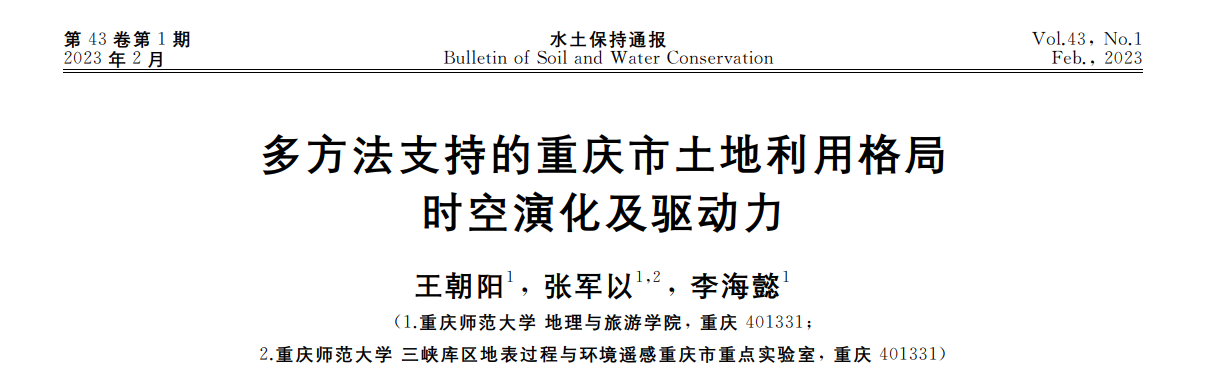 以题为《多方法支持的重庆市土地利用格局时空演化及驱动力》,发表在《水土保持通报》。蘑菇视频