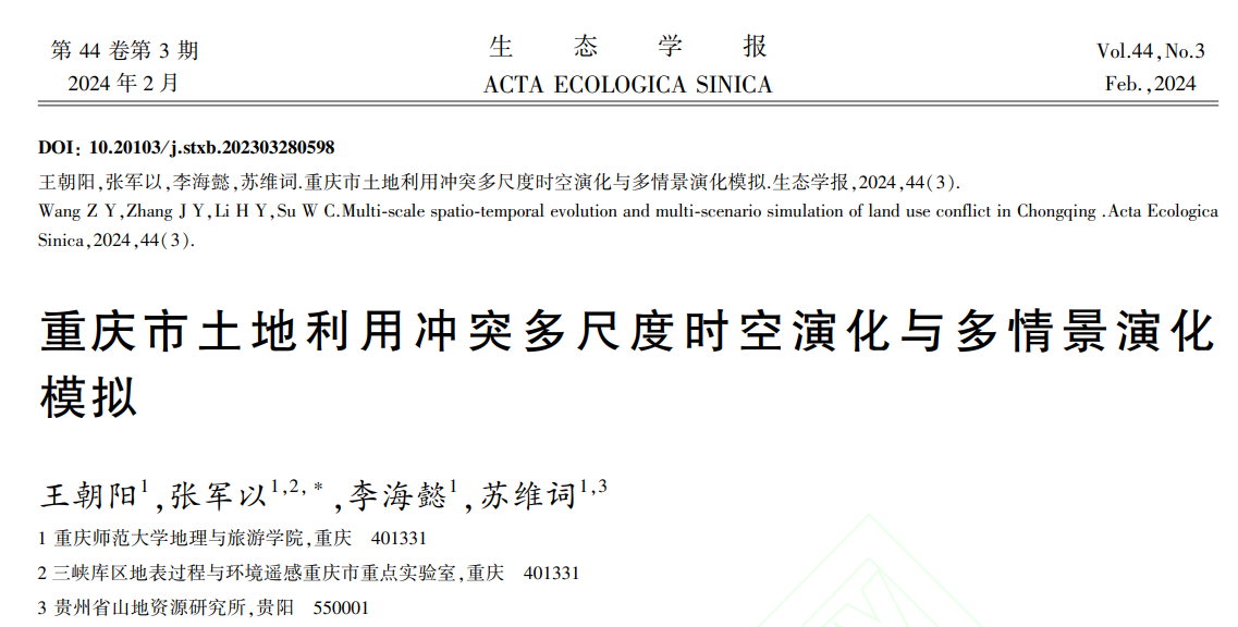 以题为《重庆市土地利用冲突多尺度时空演化与多情景演化模拟》,发表在《生态学报》。蘑菇视频