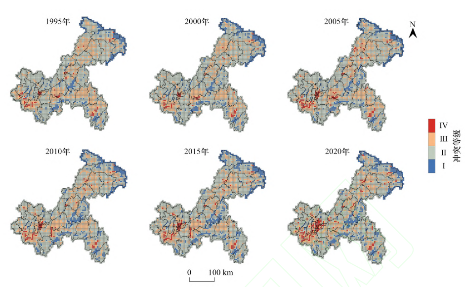 图5 重庆市未来不同发展情景下土地利用冲突空间分布图