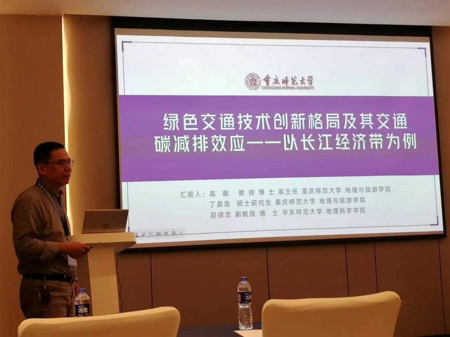 人文地理创新研究团队高鑫教授在本次会议上主持了“区域创新与高质量发展”分会场并做了题为《绿色交通技术创新格局及其交通碳减排——以长江经济带为例》的分会场报告。该研究以万方数据知识服务平台为数据源,获取并建构了2001—2020年长江经济带城市绿色交通专利申请时空数据库,运用空间杜宾模型探讨了绿色交通技术创新对长江经济带各城市群交通碳减排的贡献,并初步确立了测度绿色交通技术创新的碳减排效应的合理空间尺度。