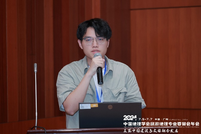 2022级研究生张哲林参加了“文旅融合空间优化与美丽中国建设”分论坛,做了题为“Scene Construction and Configuration Analysis of Chongqing Yangtze River National Cultural Park, China: An Empirical Study Based on Cultural Amenities”的学术报告,分享了团队在长江国家文化公园功能体系构建与空间整合模式研究领域的最新研究进展,提出重庆长江国家公园的整体建设要秉持“人-自然-文化”的互动原则,以优化舒适物场景布局、凝练文化认同体系、增强人民幸福感与获得感作为依据。