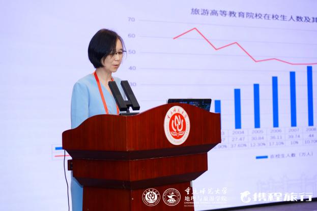 主题报告环节,特邀嘉宾中国旅游研究院院长戴斌教授,南开大学商学院院长、全国MTA教指委副主任白长虹教授,中山大学旅游学院院长徐红罡教授,文旅部科技教育司原司长孙若风,十里芳菲文旅集团董事长张蓓,携程商务副总裁、携程文旅产业学院院长刘迪分别做了主题为“旅游强国建设与人才培养”“幸福与创造:中国文旅的先锋案例经验与MTA教育发展” “中国旅游管理专业建设”“科技创新赋能文旅融合高质量发展”“怀揣理想 共建美好乡村”“目的地文旅营销”的主题报告,结合自身研究,为新时代文旅发展提出了具有前瞻性和实践性的见解,深入剖析了当前文旅产业发展的机遇与挑战,系统阐述了人才培养、科技创新、乡村振兴等关键议题,为文旅高质量发展指明了方向和创新发展路径。最后,携程商务副总裁刘迪在会上宣布正式启动携程入境游多语言服务人才培训计划并将在重庆首发试点。