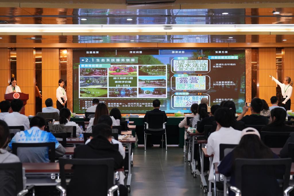本届大赛分4组在2个赛场同步开展。分组赛各参赛团队紧密围绕“数智驱动与绿色未来”这一主题,带来了涵盖生态修复、水资源管理、绿色发展、碳中和、智慧农业等领域的科技作品。现场答辩精彩纷呈,学子们通过扎实的数据分析、精准的模型构建和创新的解决方案,生动演绎了如何以数智科技赋能自然资源治理现代化,为绿色未来发展提供了富有创见的青年智慧。
