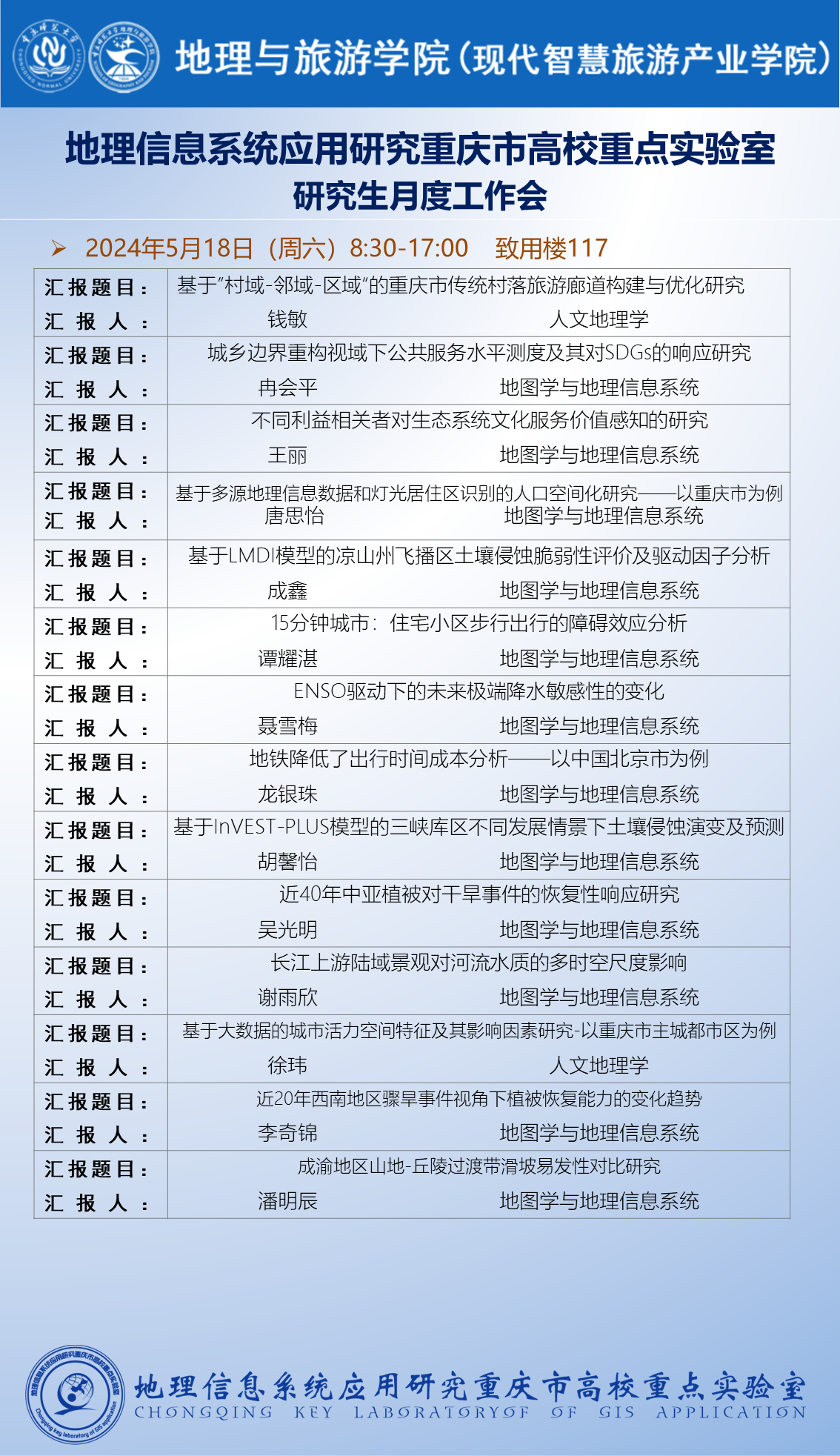 汇报环节,同学们展示了近期工作进度、阶段性研究成果和工作计划。本次汇报涵盖公共服务测度、障碍效应、极端气候、交通出行、生态安全和土壤侵蚀等多个研究主题,涉及方法包括LMDI模型、InVEST-PLUS模型、DSSAT模型等,充分体现了地理学科与地理时空大数据相结合的研究理念。同时,研究区域涉及了三峡库区、长江经济带、中亚地区、全球等多尺度,深化了师生对区域差异的理解。