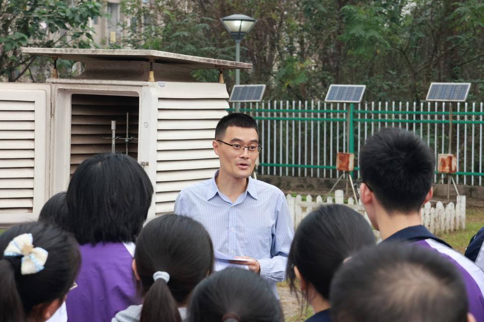 随后,同学们走进了气象园,在学院王跃峰副教授的指导和讲解下,他们动手操作各种气象仪器,亲身体验了气象观测的全过程。通过将高中课堂上的理论知识与实际操作紧密结合,同学们对所学知识有了更为深入的理解和掌握。在地质馆,蘑菇视频 23级地理科学专业志愿者为同学们进行全程专业讲解,通过积极引导同学们进行标本观察、小组讨论和提问互动,巩固强化了同学们对高中地理知识的学习与理解。