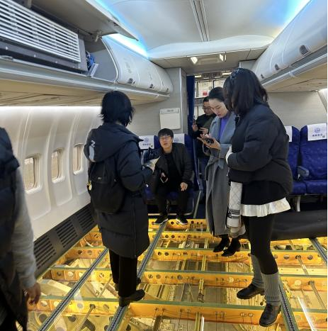 教师团队,并亲自陪同参观了该校的航空实训中心。在实训中心,两校教师共同体验了A320静态撤离舱、B737-700实训客机以及A330双通道模拟舱等先进实训设备,并就航服专业各类课程的教学实践问题进行了深入而细致的交流。