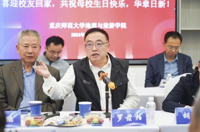 座谈会由学院党委书记胡芳主持,向远道回来的校友嘉宾致以最热情的欢迎与衷心的问候。接着,党委副书记、执行院长(正处级)韦杰教授向全体校友系统介绍了学院总体情况、事业发展状况、未来发展思路,全面详细地介绍了学院近年发展取得的各项成就,诚邀校友共绘学院新篇章。校友代表兼教师代表张军以在发言中回顾了他在学院求学与工作的双重经历,表达了对学院深厚的感情与不懈的追求。川渝地区首家本科旅游管理专业校友代表廖洪伟分享了自己毕业后成长为一名五星级酒店总经理的创业历程,地理教育1978级校友廖元和分享了自己成长为一名教授学者和高校领导的心得感悟,地理教育1981级校友田其云分享了自己从地理学到生态环境再到环境保护法等交叉学科领域的研究与成长,地理教育1991级校友宋仕川分享了自己深耕中学地理基础教育战线的师者初心,地理信息科学首届2003级校友何巧分享了自己服务聋人群体成长为全国道德模范的为民情怀。其他校友们也纷纷发言,他们或讲述自己在专业领域的探索与成就,或分享人生旅途中的感悟与收获,言辞恳切,句句皆是对母校深深的眷恋与感激。更有校友结合自身经历,为学院的人才培养、学科建设等方面提出了宝贵的建议,展现了地旅学子心系母校、回馈社会的赤子之心。