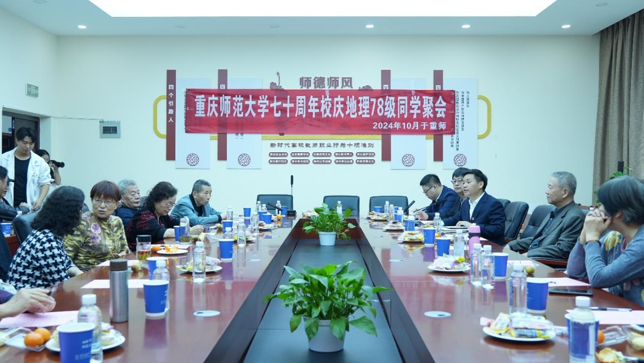 10月19日下午地理教育1978级举办座谈会,校友与学院领导班子共聚一堂,重温昔日校园时光,分享人生经历与感悟,并就地理学科的最新发展及学院建设进行了深入探讨。