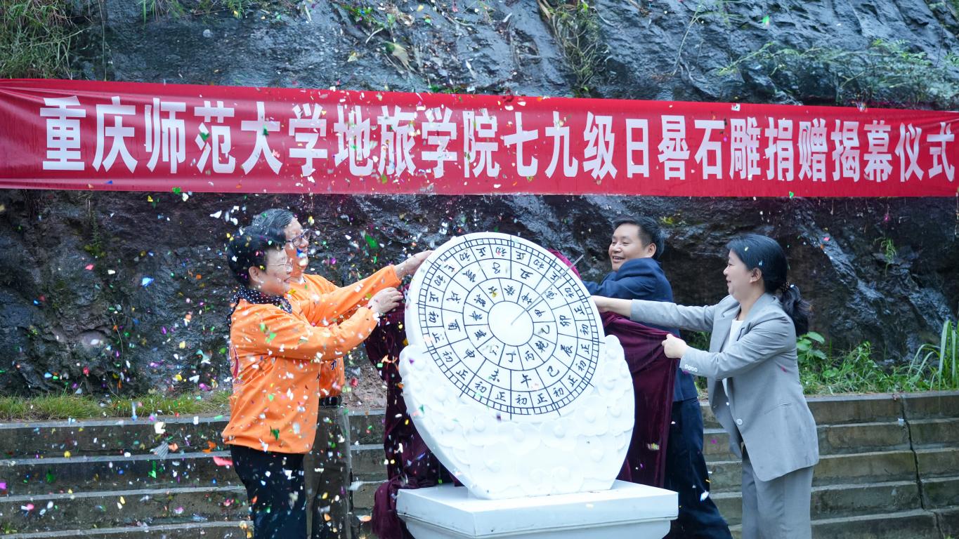 首先,捐赠方代表,陈爱民在发言中深情地说:“日晷,这一中华传统文化的瑰宝,不仅承载着时间的流转,更象征着我们对地理与旅游专业的热爱与追求。这座汉白玉日晷石雕,是七九级校友对母校和学院深情厚谊的物化,更是对新一辈学子的殷切期望与激励。”