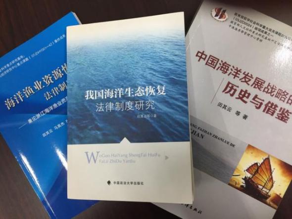 作为中国法学会环境资源法学研究会海洋环境法专业委员会的副主任委员、中国海洋大学的教授,田其云始终将完善海洋环境保护法制建设视为自己的学术责任。主持和参与的科研项目主要有:主持我国海洋生态恢复法律制度研究(国家社科基金项目)、海洋生态环境保护法律体系及重点领域法律问题研究(生态环境部环境与经济政策研究中心招标项目);参与全球化背景下中国海洋权益法律保障(教育部哲学社会科学研究重大课题攻关项目)、中国海洋发展战略研究(教育部哲学社会科学重大攻关课题攻关项目),等。出版《我国海洋生态恢复法律制度研究》、《中国海洋发展战略的历史与借鉴》等学术著作;在《法学杂志》《海洋科学》等学术刊物上发表海洋生态退化与恢复的法律问题研究、生态文明与海洋渔业资源恢复法律制度的生态效益分析、海洋渔业资源恢复法律制度的生态学基础、海洋渔业资源保护规程初探、“造血式”海洋生态补偿探讨等学术论文。为在海洋环境保护法制建设中建立海洋生态修复制度作出了自己的学术贡献,代表性观点有①海洋生态恢复必须成为法律制度,而且是基本法律制度,在制度设计中注重过程导向的海洋生态恢复模式,设立海洋生态恢复技术引导机制。②修订《海洋环境保护法》,将第三章“海洋生态保护”修改为“海洋生态保护与修复”,建立海洋生态修复制度,明确国家、沿海地方人民政府、海域使用权人的海洋生态修复责任与义务,将人工鱼礁、增殖放流、海洋牧场建设界定为海洋生态修复行为而进行规范。③建立健全海洋生态补偿制度,海域使用权人缴纳海洋生态损失补偿费,统筹用于海洋生态保护、受损海洋生态系统修复、海洋生态系统异地重建。
