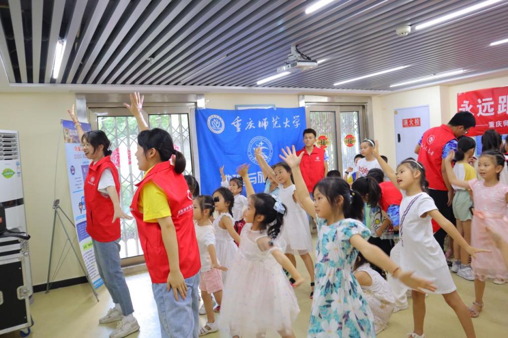 志愿者们教小朋友跳舞、唱歌  (崔陈静 摄)